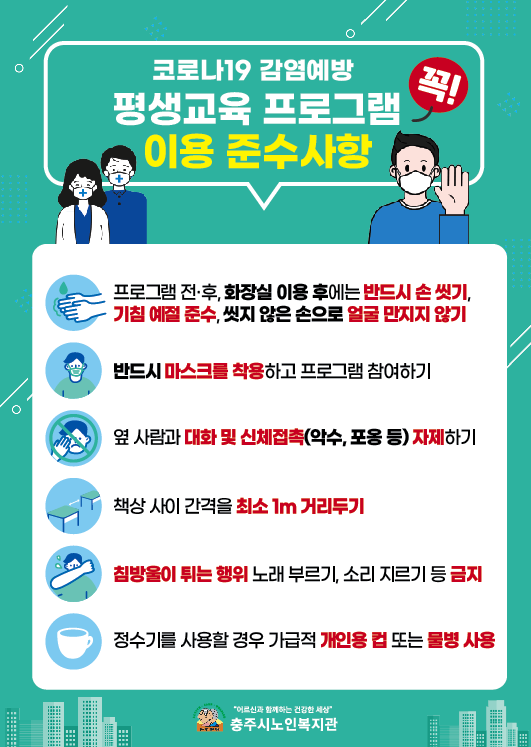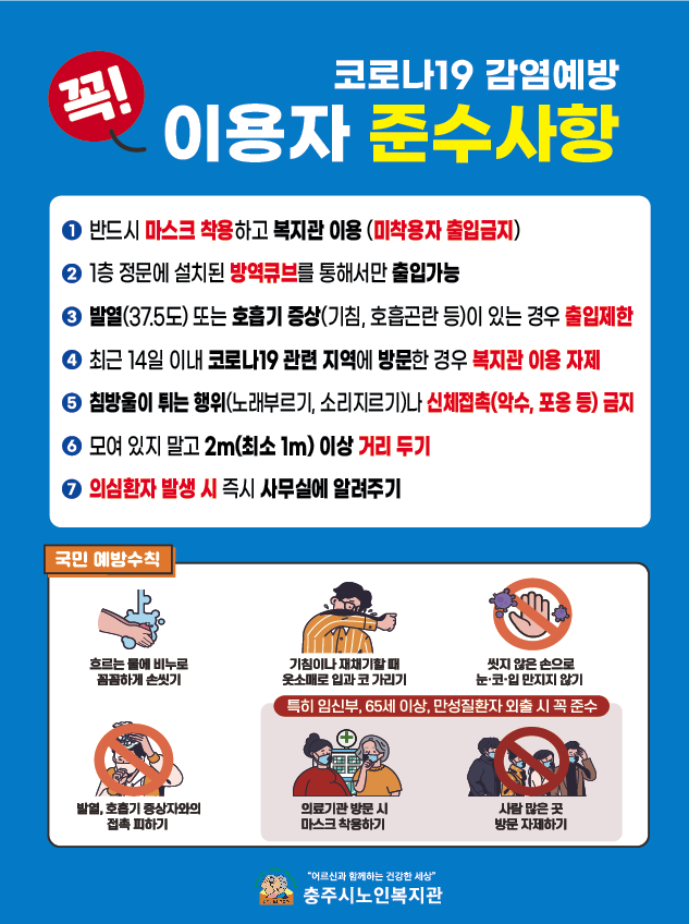 코로나19 감염예방 "복지관을 이용하실땐 꼭 지켜주세요~"