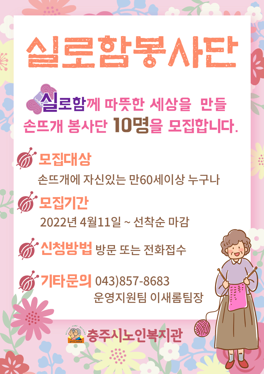 [본관] "실로함(손뜨개) 봉사단" 모집합니다.^^