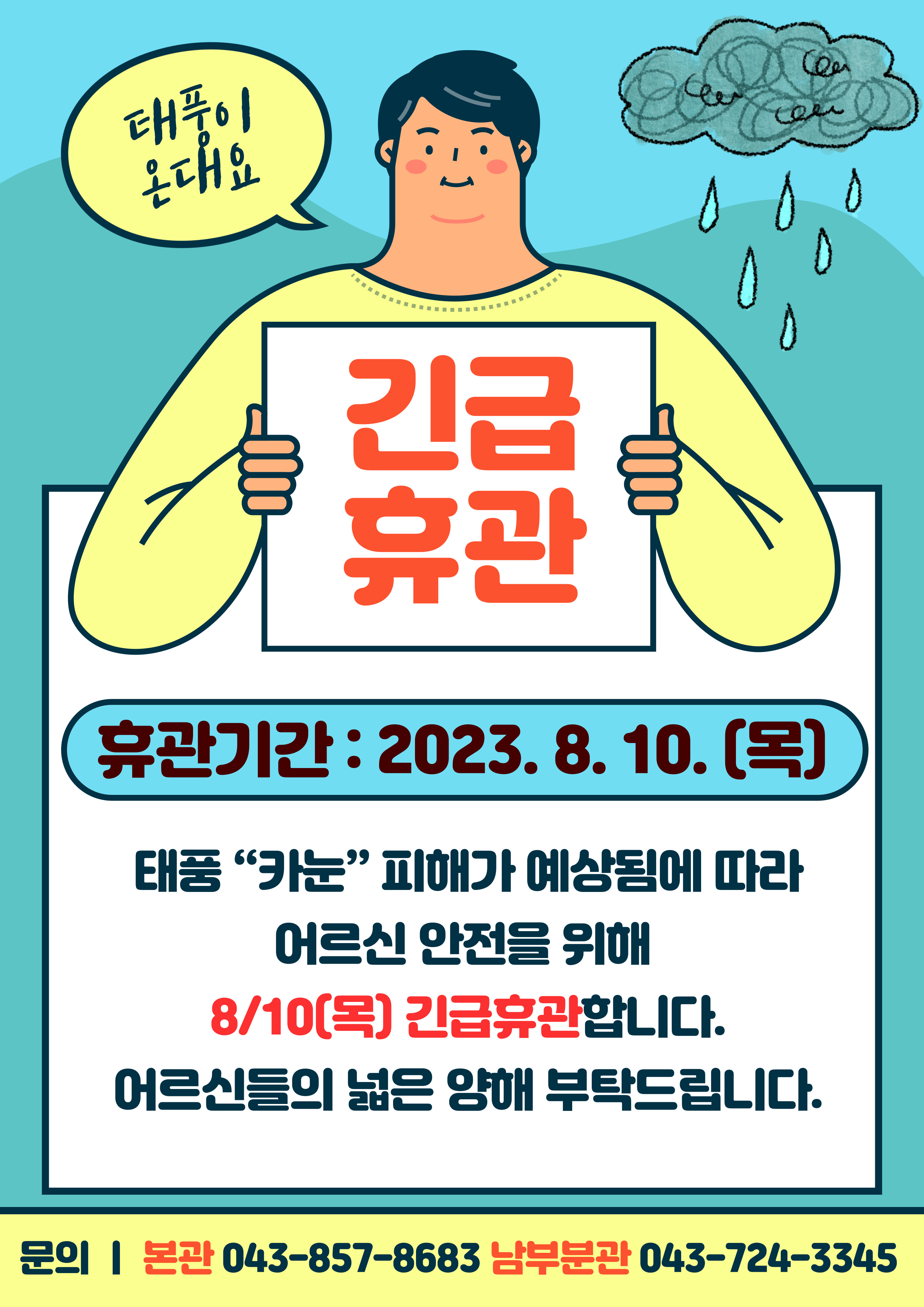 [긴급휴관] 태풍'카눈'으로 인해 8/10(목) 긴급휴관