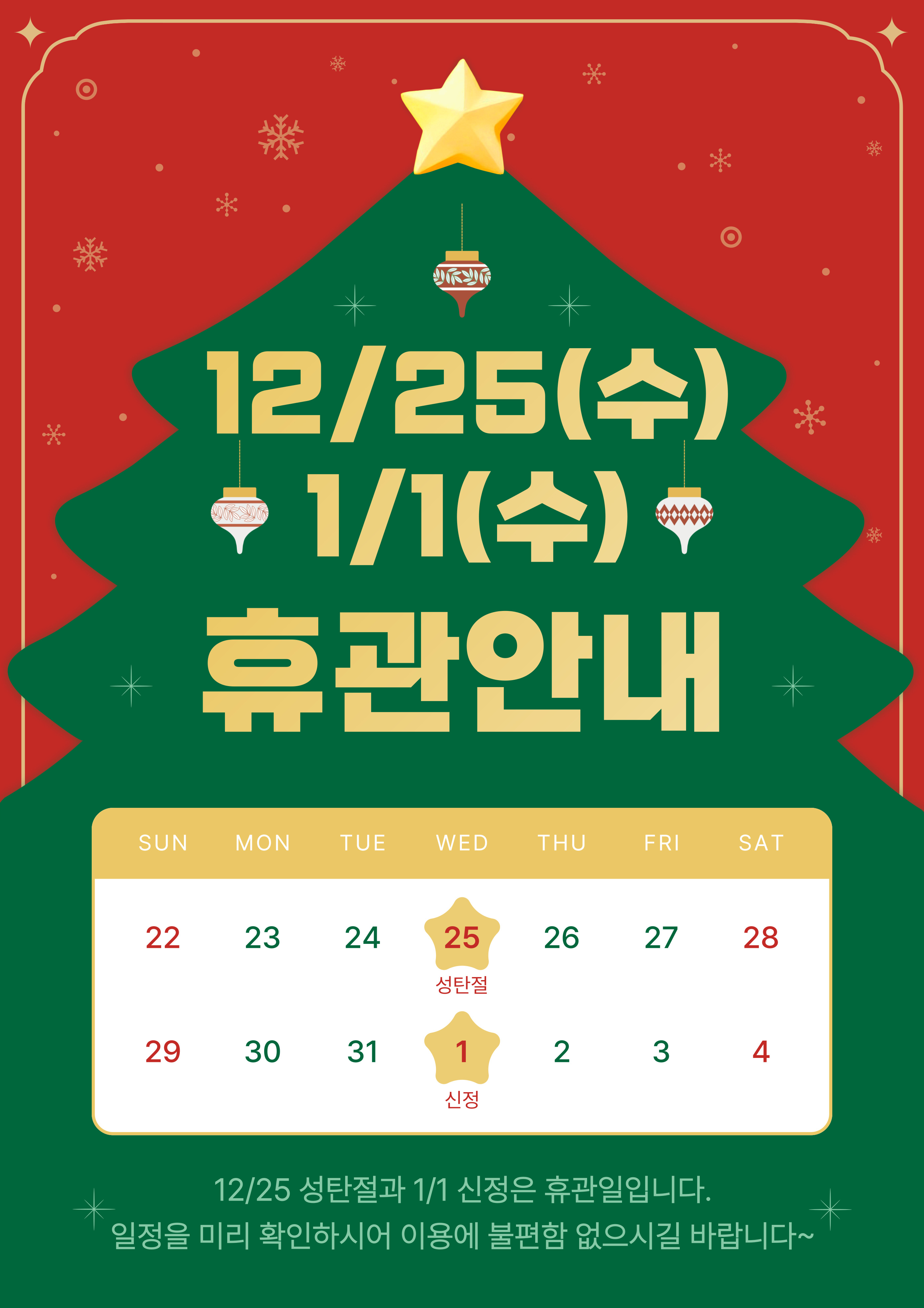 12/25(수), 1/1(수) 휴관안내