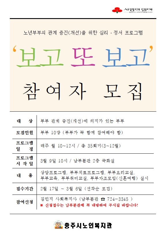 충북사회복지공동모금회 신청사업 부부관계증진[보고 또 보고] 참여자 모집
