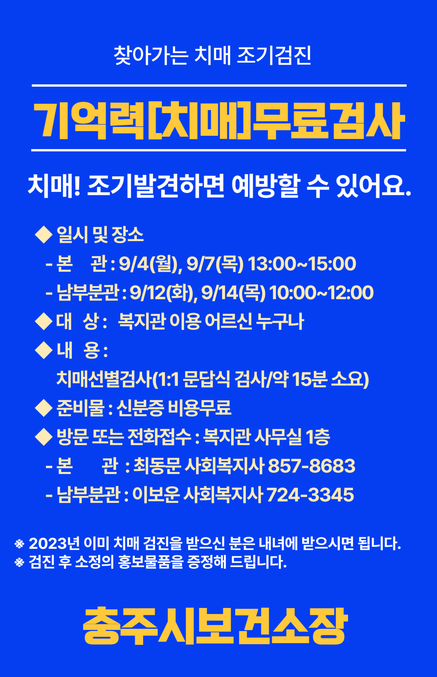 [본관, 남부분관] 기억력[치매] 무료검사 참여자 모집