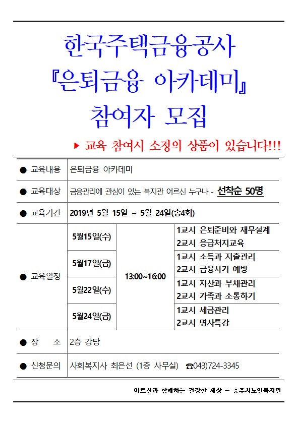 "은퇴금융 아카데미" 교육 참여자 모집