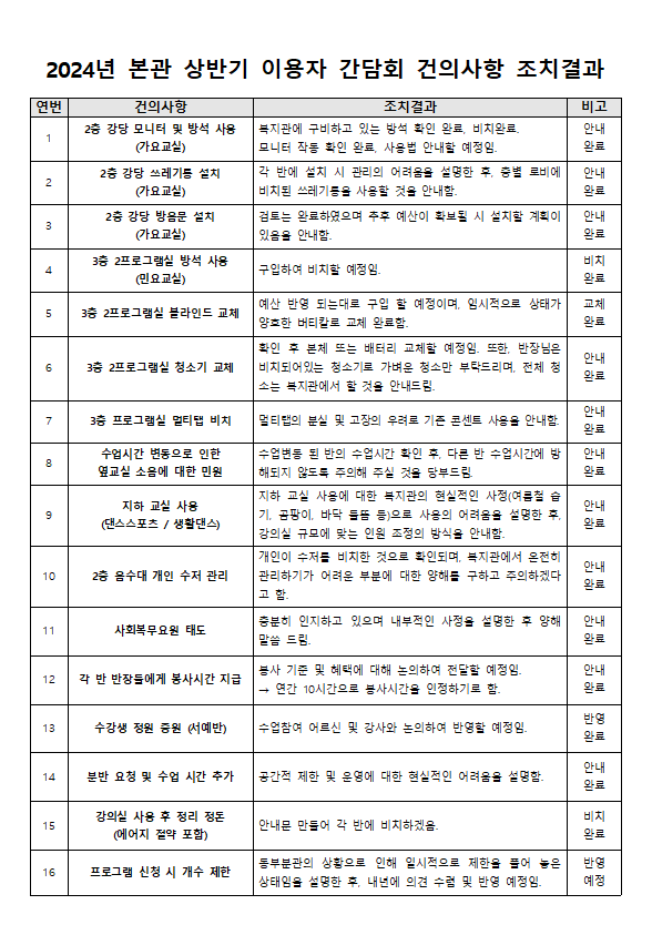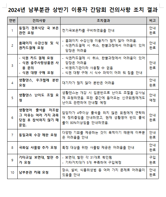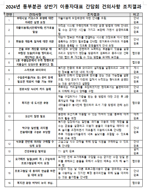 [본관, 남부분관, 동부분관] 상반기 이용자 간담회 건의사항 조치결과