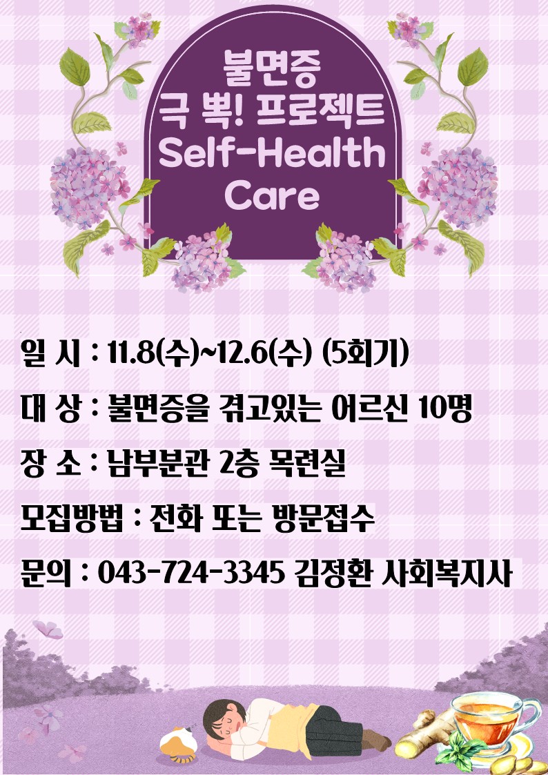 [남부분관] 불면증 극복을 위한 집단상담 「Self-Health Care」 참여자 모집