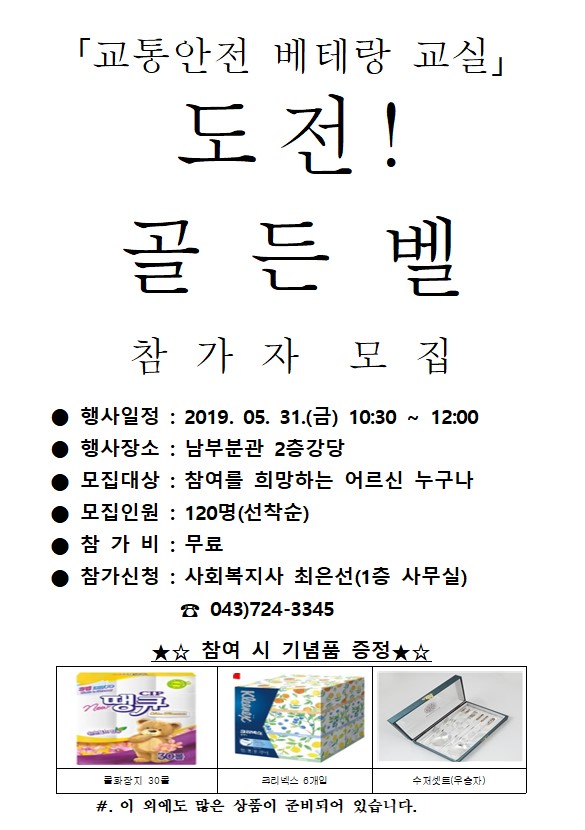 교통안전 베테랑 교실 도전!골든벨 참가자 모집