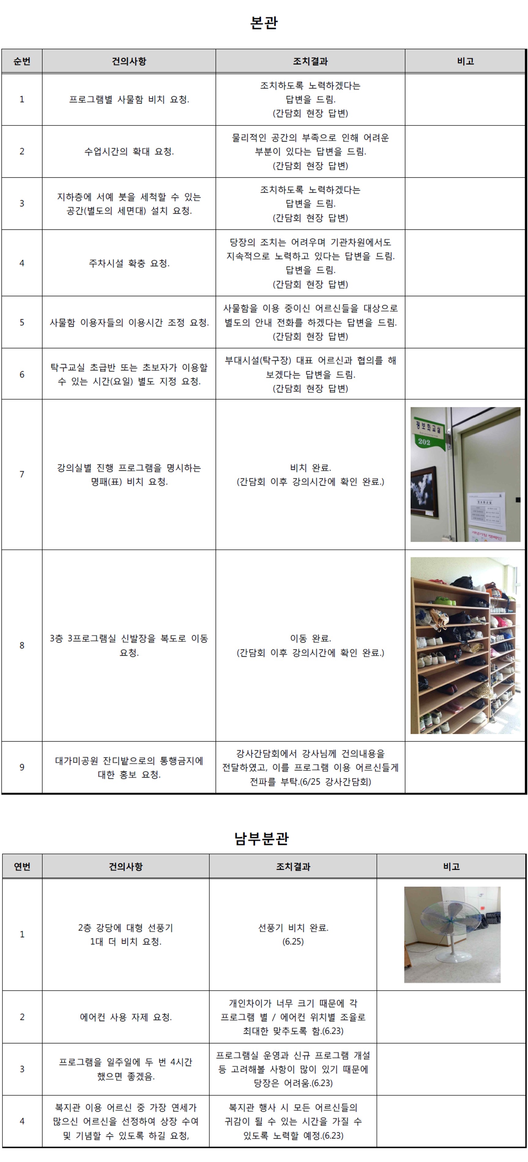 충주시노인복지관 2015년도 상반기 이용자간담회 건의사항 처리결과 공지