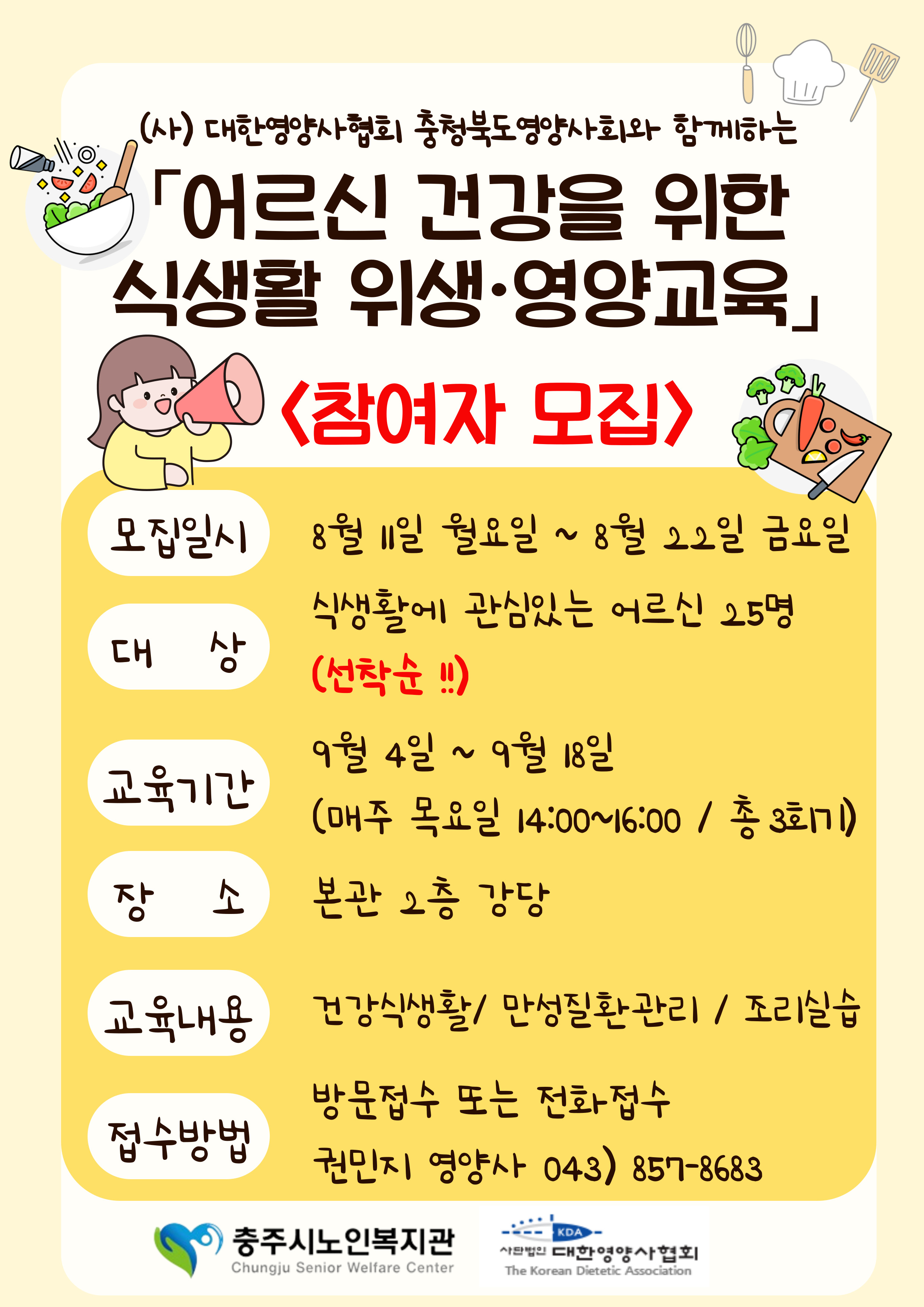 [본관] 2025년 '어르신 식생활 위생·영양교육' 참여자 모집