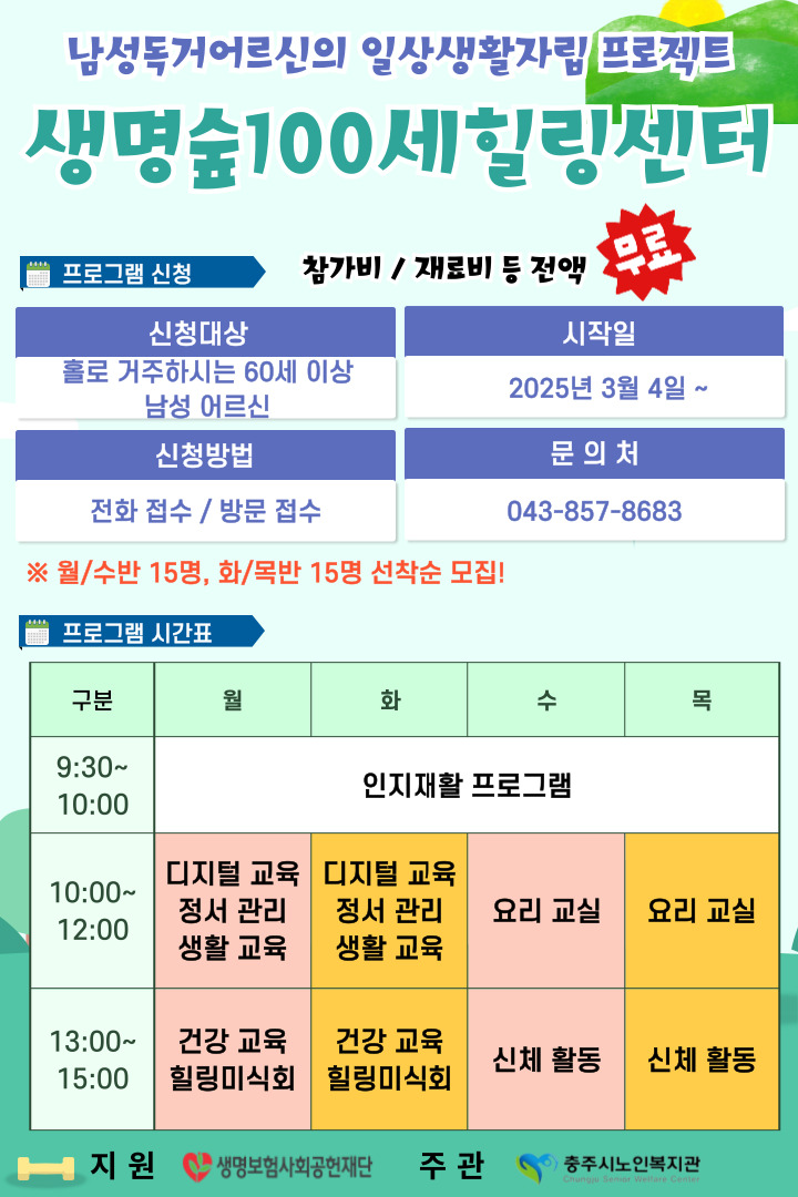 [본관] 2025년 '생명숲100세힐링센터' 참여자 모집