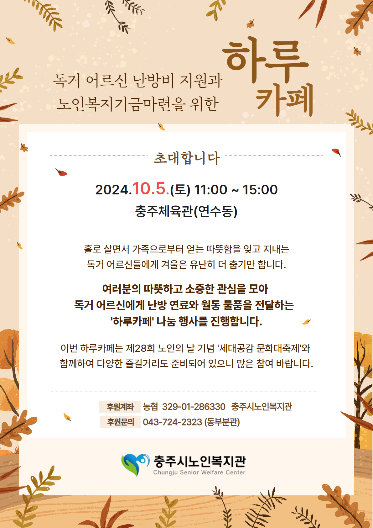 독거 어르신 난방비 지원과 노인복지기금 마련을 위한 <하루카페> 참여안내