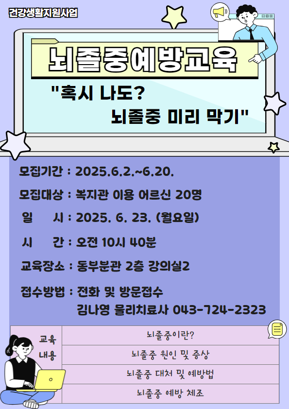 [동부분관] 뇌졸중 예방교육 '혹시 나도? 뇌졸중 미리 막기' 참여자 모집