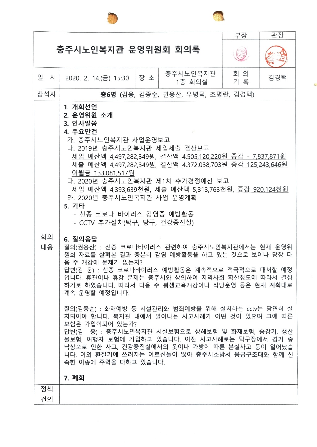 첨부. 2020년 1분기 운영위원회 회의록 1부.