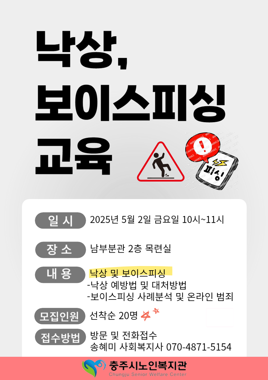 남부분관에서 낙상 및 보이스피싱 교육 참여자를 모집합니다.