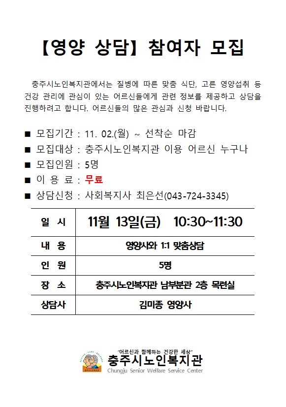 2020년 남부분관 전문상담[영양상담] 내담자 모집
