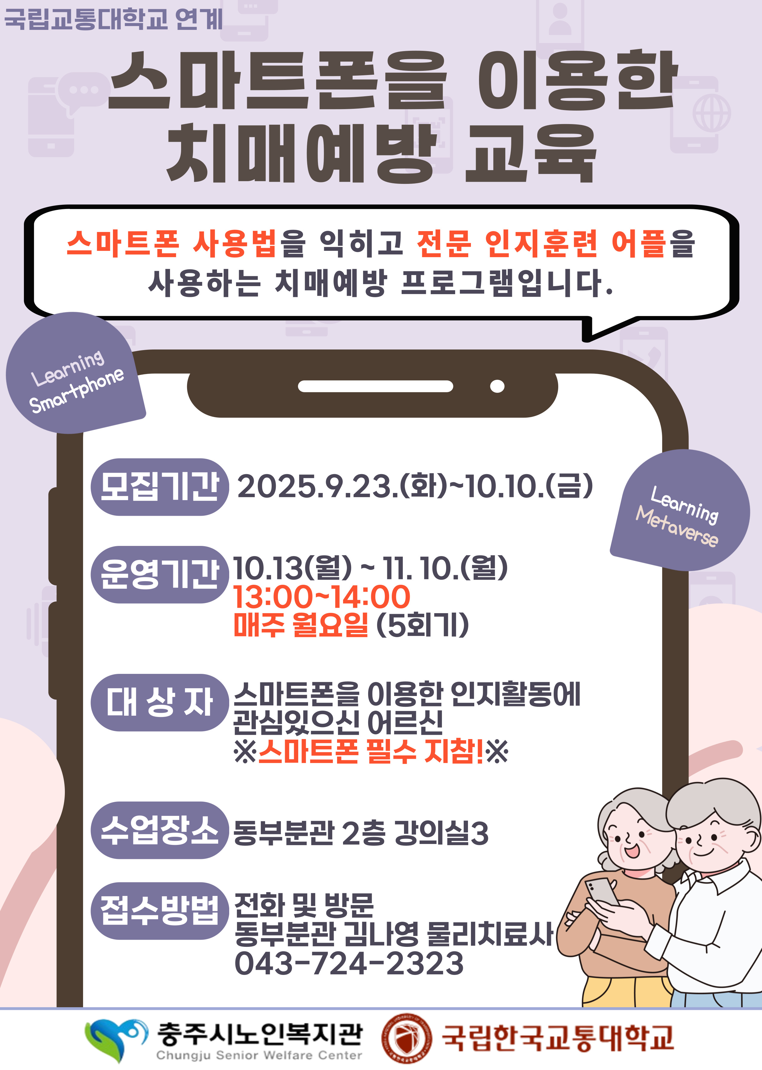 「스마트폰을 이용한 치매예방 교육」 참여자를 모집합니다!