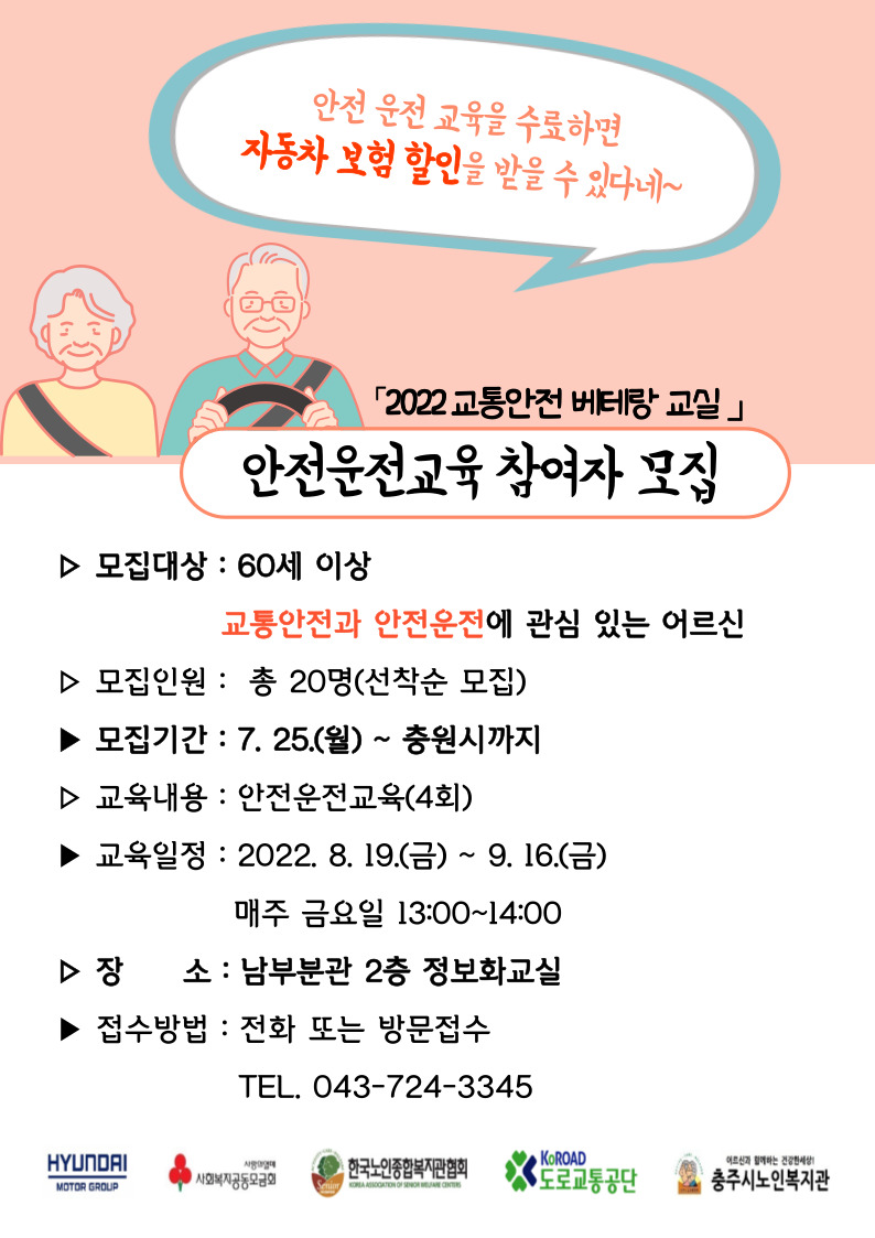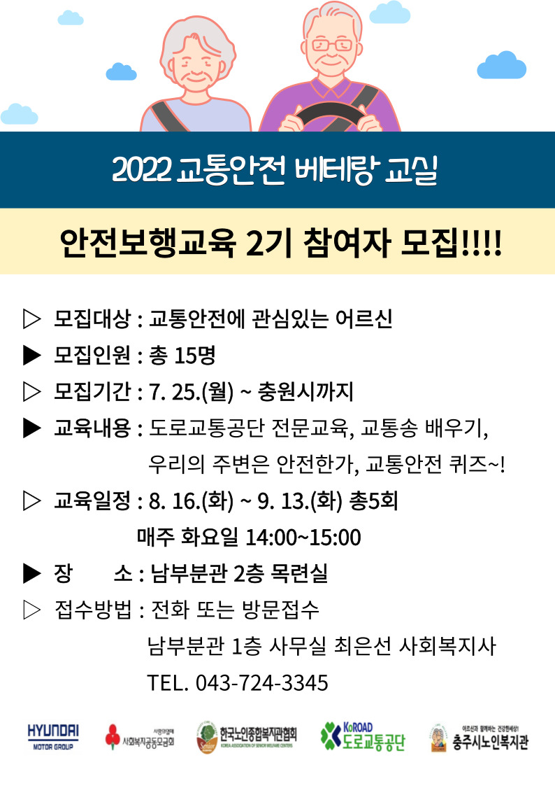「2022년 베테랑 교통안전 교실」 안전보행교실2기 / 안전운전교실 참여자 모집!!!