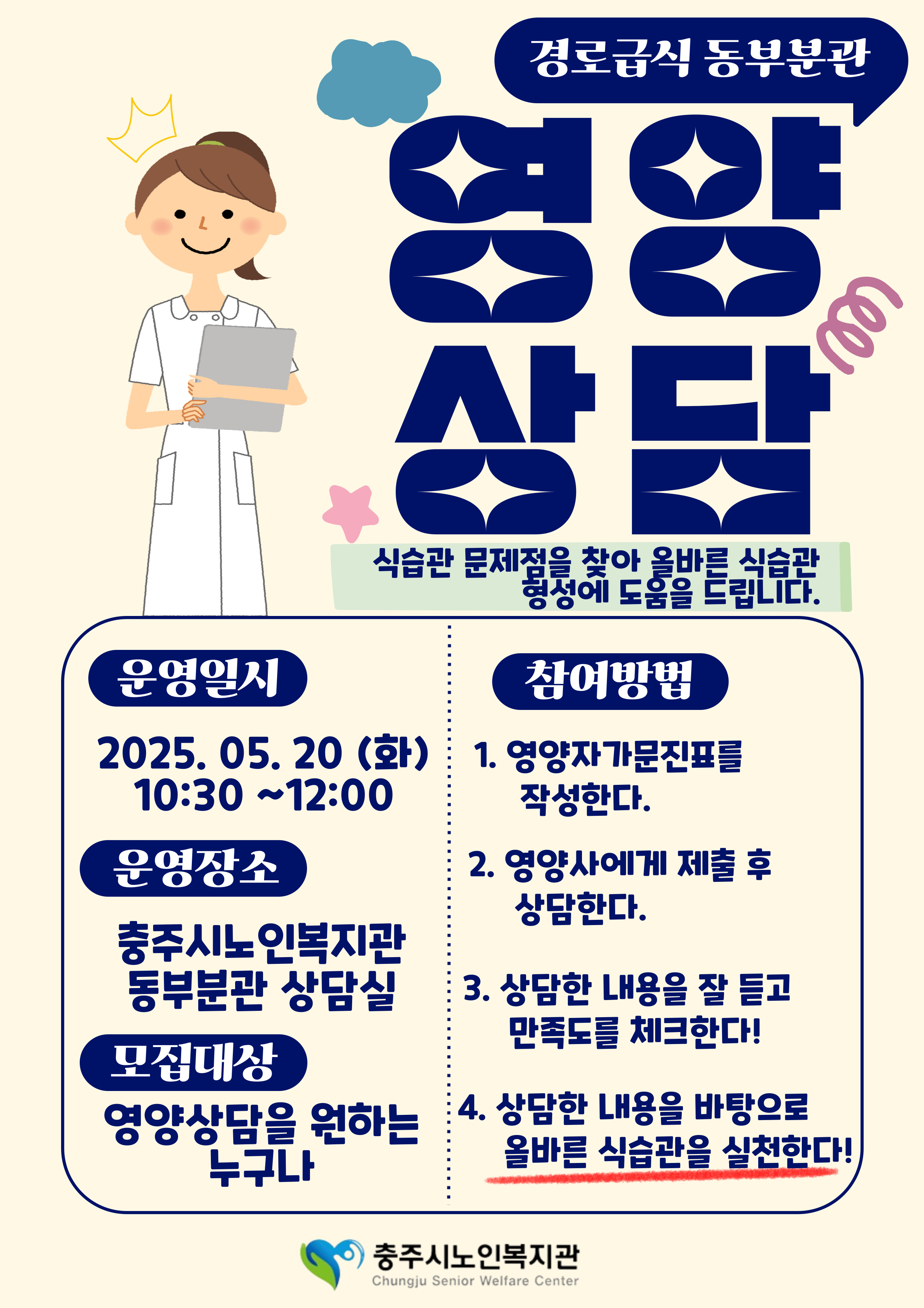 동부분관에서 '영양상담' 참여자를 모집합니다.