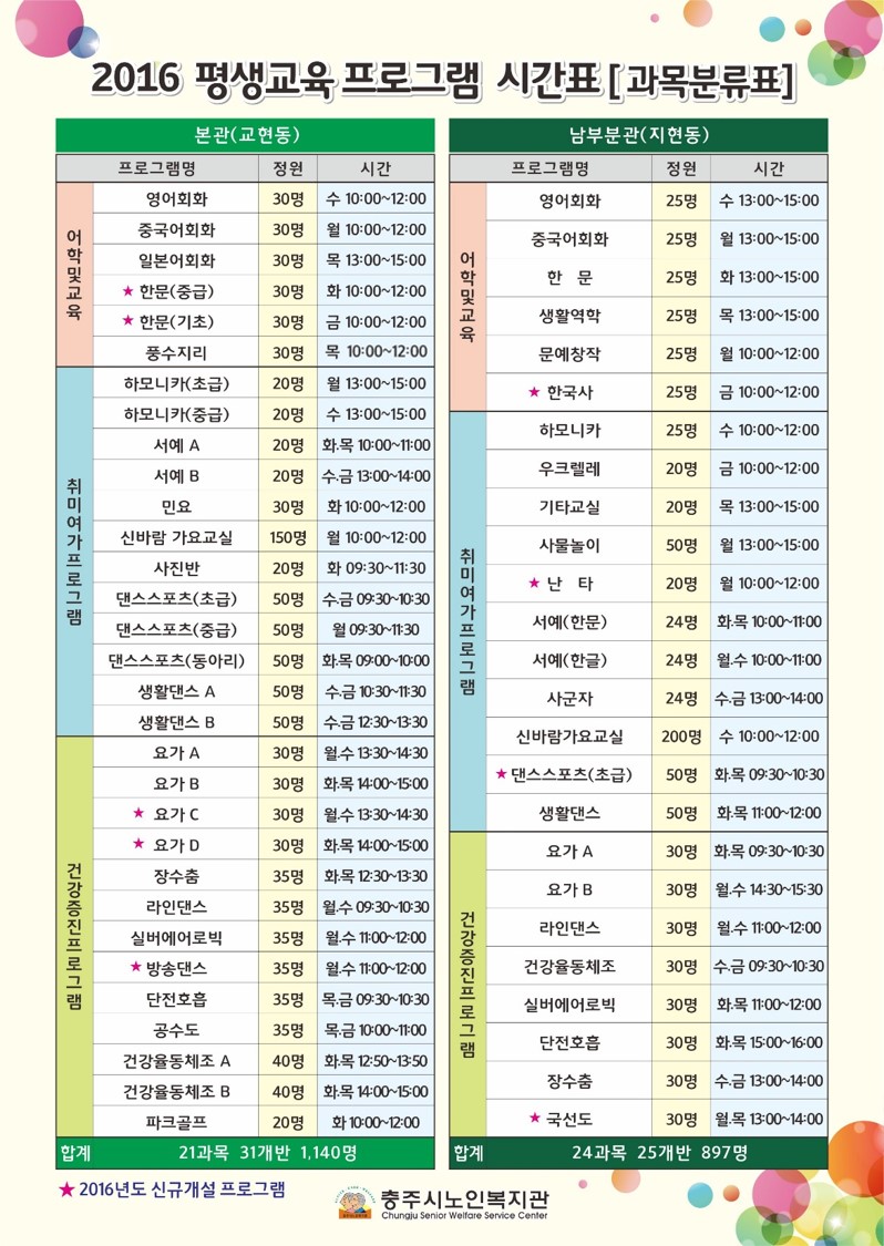 2016년 충주시노인복지관 평생교육프로그램 수강생 모집 공고