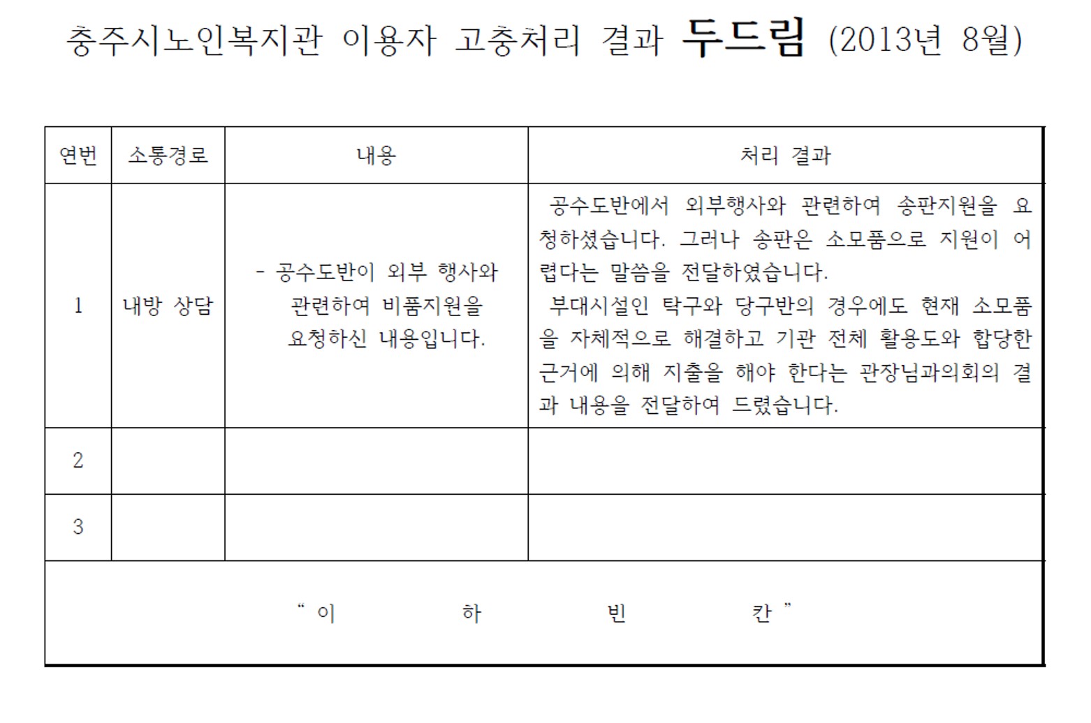 충주시노인복지관 이용자고충처리결과(2013.8월)