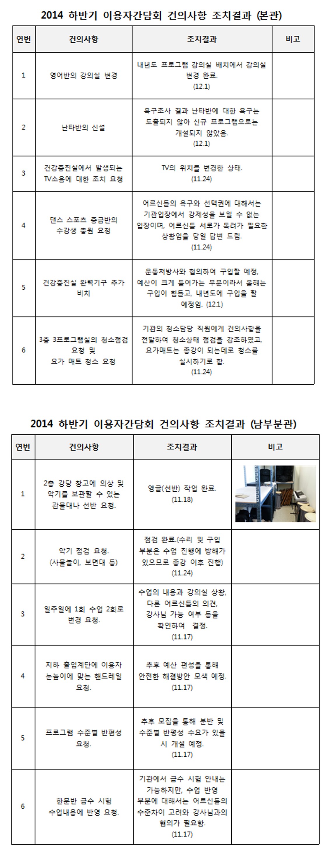 2014 충주시노인복지관 하반기 이용자간담회 건의사항 조치결과 공고
