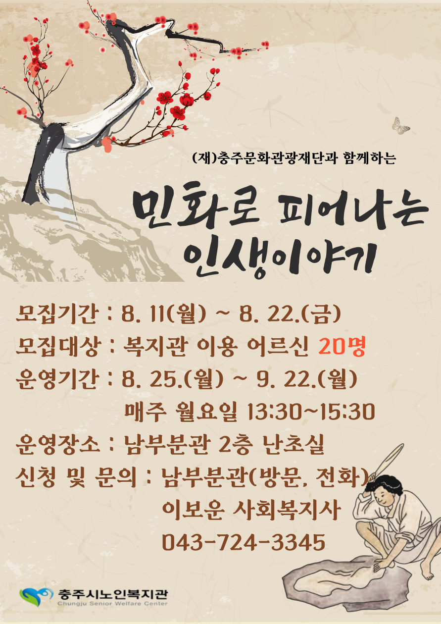 (재)충주문화관광재단 연계 문화예술프로그램 [민화로 피어나는 인생이야기] 참여자를 모집합니다.