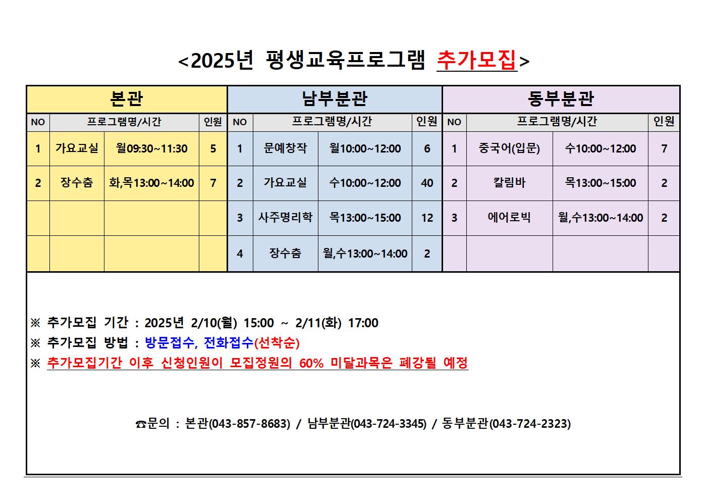 2025 평생교육프로그램 추가모집 안내