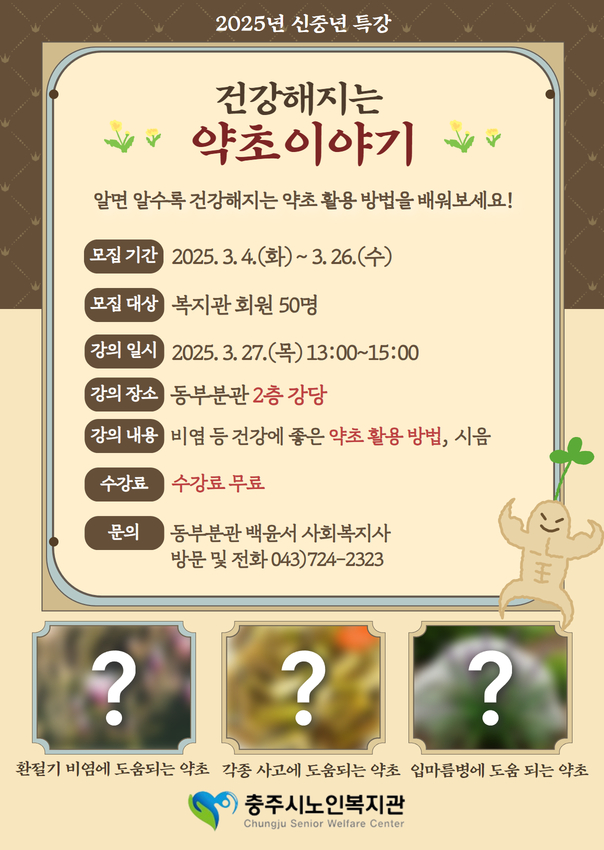 [동부분관] 신중년사업 특강 '건강해지는 약초 이야기' 참여자 모집