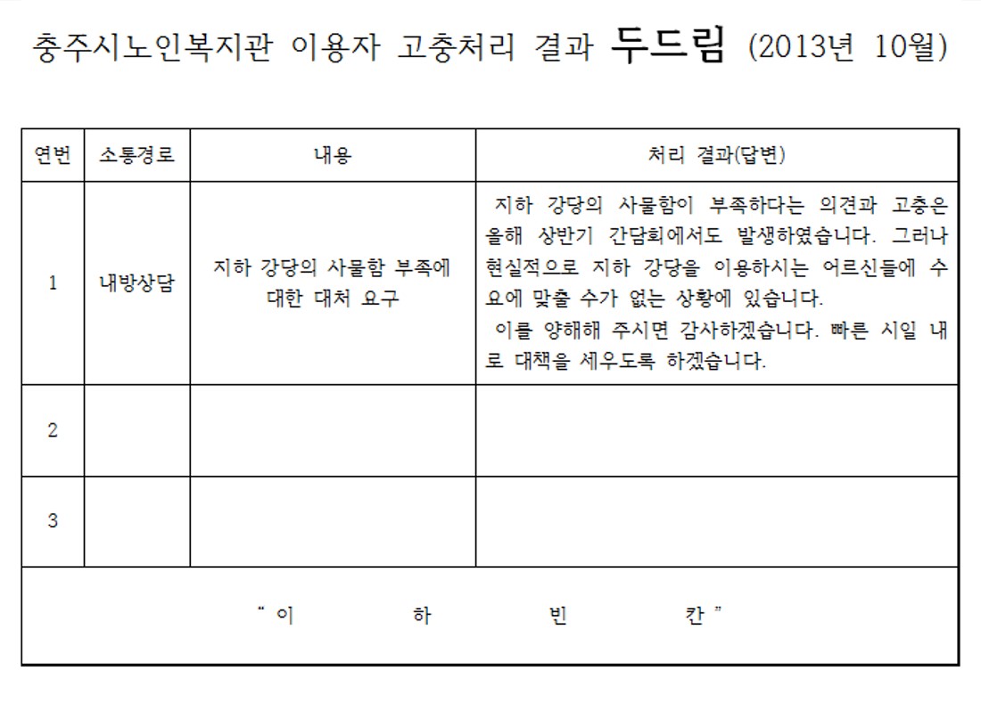 충주시노인복지관 이용자고충처리결과(2013.10월)