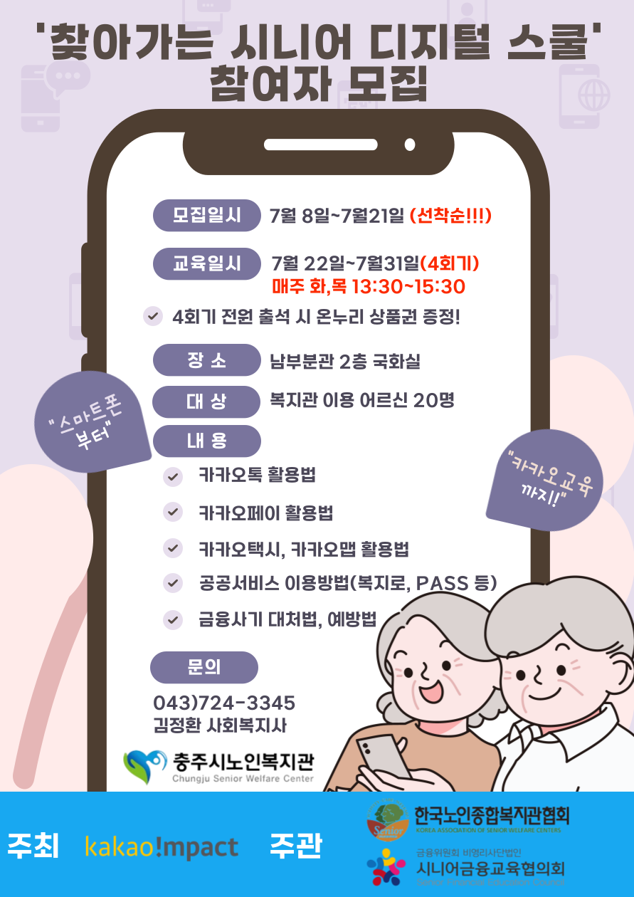 카카오톡 사용법, 카카오페이, 카카오택시, 공공서비스 이용방법 등의 다양한 교육이 마련되어 있습니다.