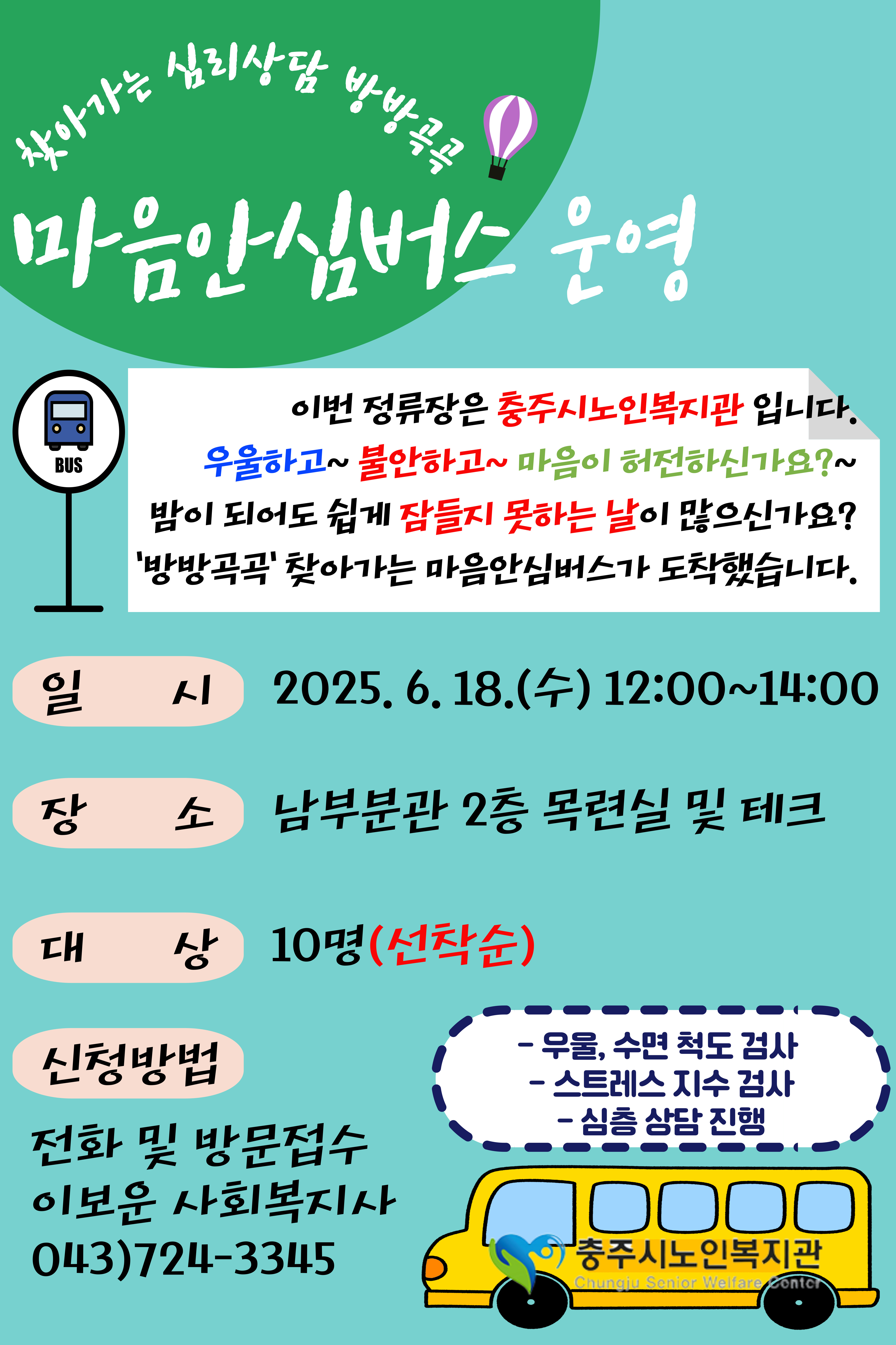 [남부분관] 찾아가는 심리상담 '방방곡곡' 마음안심버스 참여자 모집