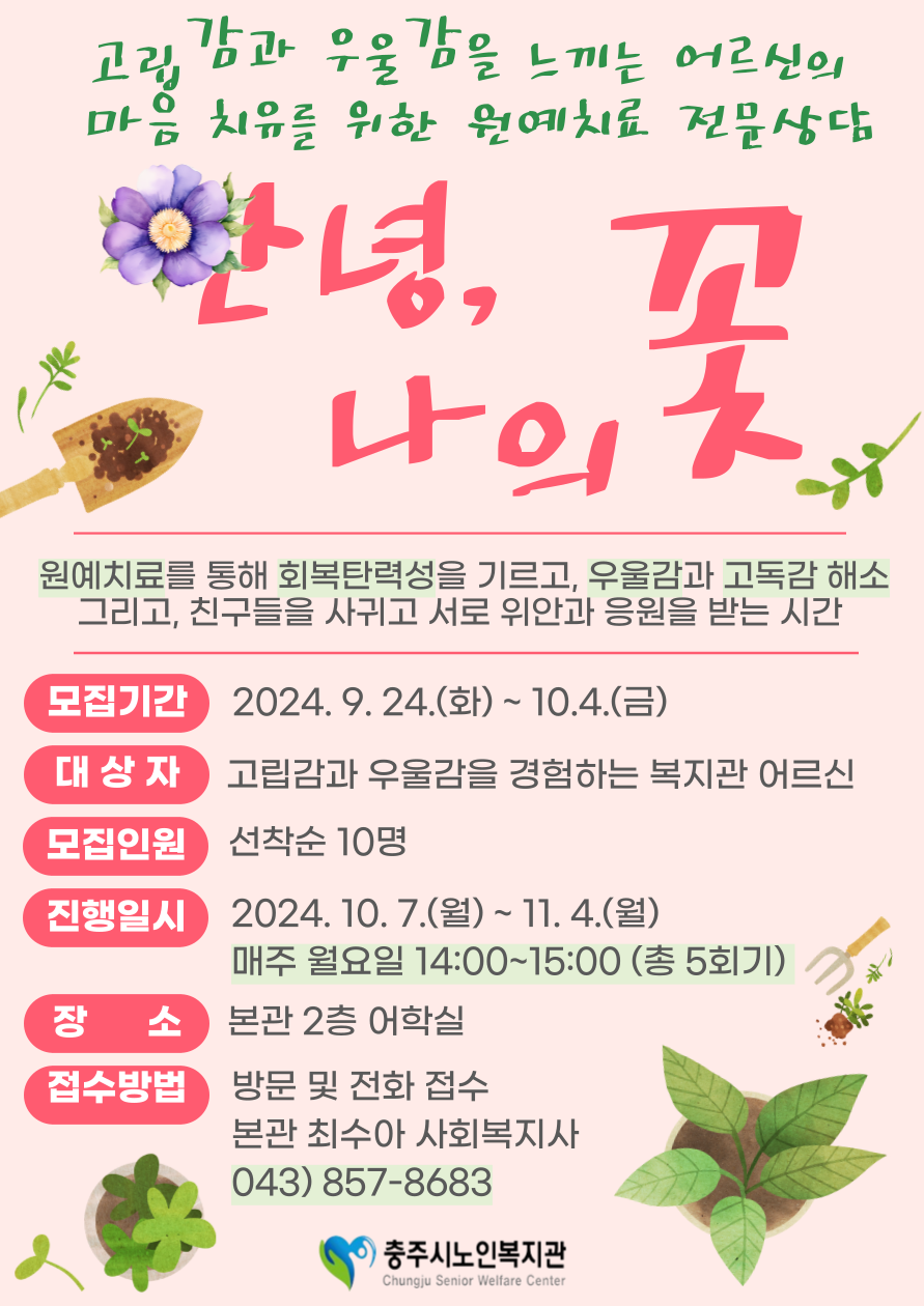 [본관] 노인 우울감 해소를 위한 원예치료 전문상담 '안녕, 나의 꽃' 참여자 모집
