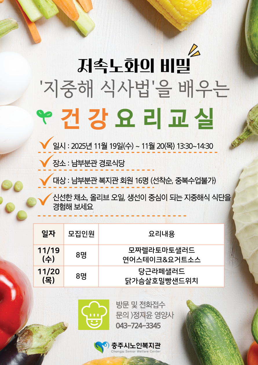 [남부] 저속노화의 비밀 '지중해 식사법'을 배우는 건강요리교실 참여자 모집