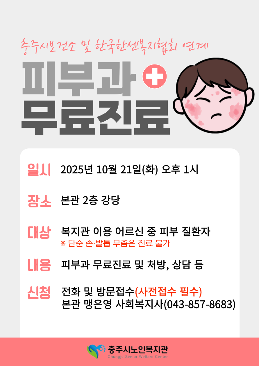 [본관] 충주시보건소, 한국한센복지협회 연계 '피부과 무료진료' 참여자 모집