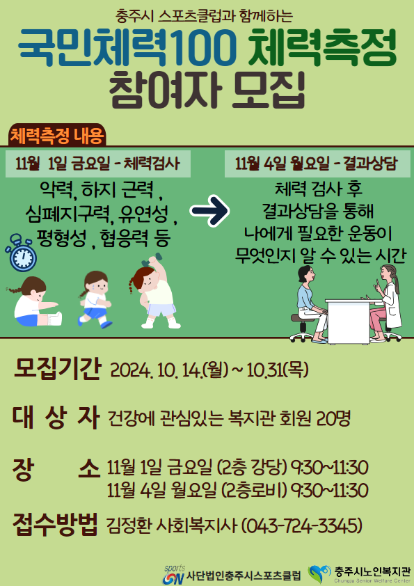 [남부분관] '체력 100'측정 참여자 모집