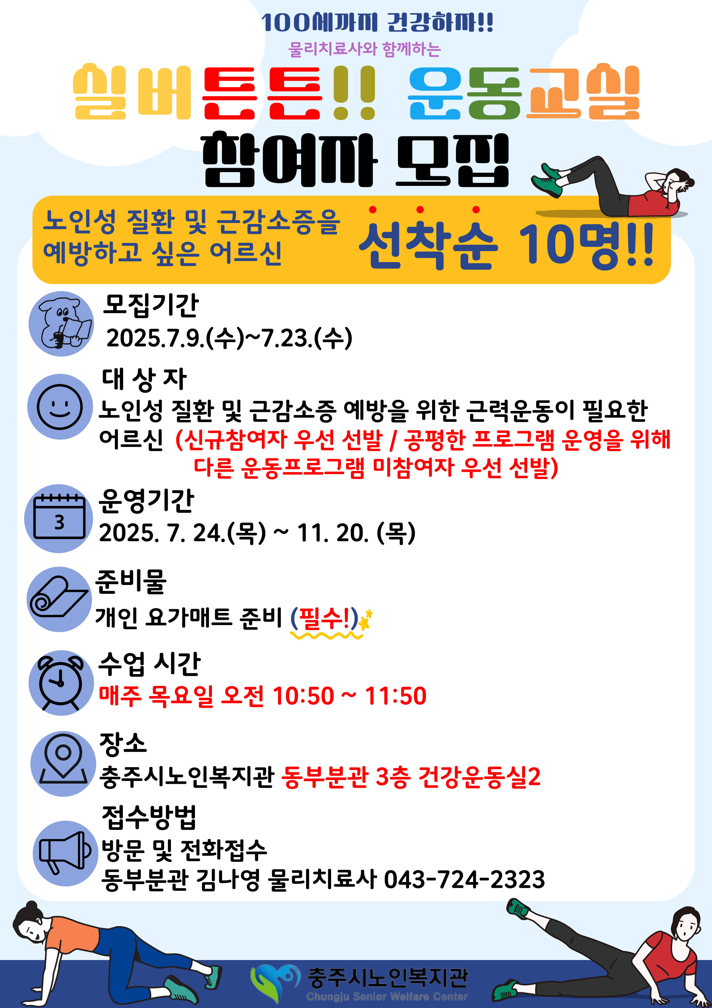 실버튼튼 운동교실을 7/24~11/20일까지 운영하고자 합니다.