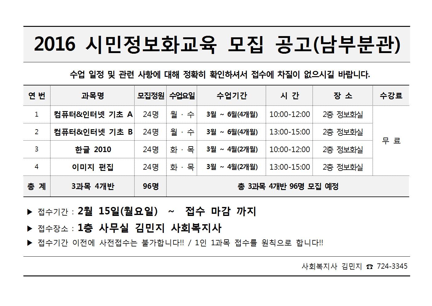 167 2016 시민정보화교육 모집 공고(남부분관) JPG 파일 2016-02-01