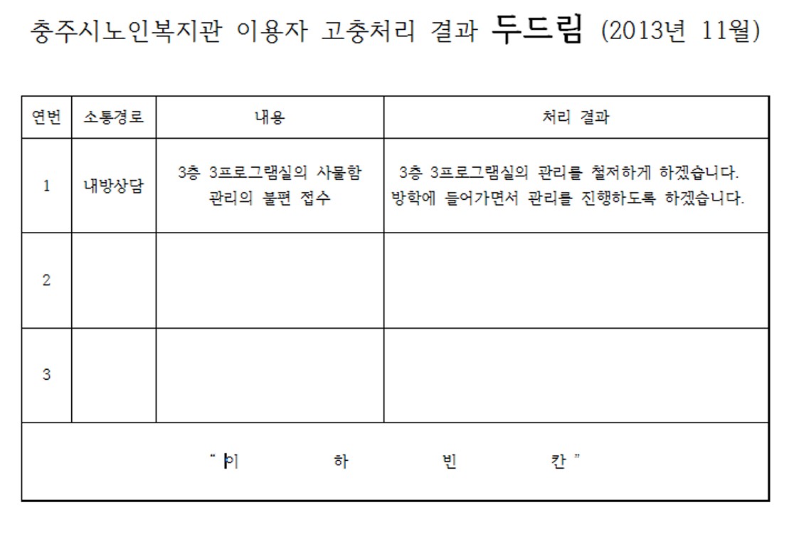 | 69 | 충주시노인복지관 이용자고충처리결과(2013.11월) |