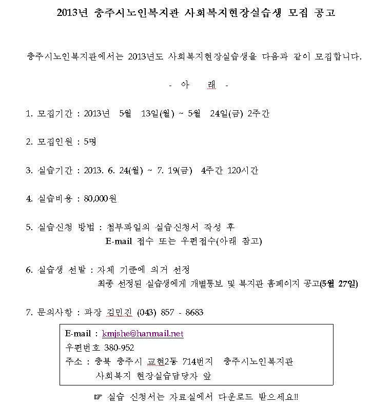 | 48 | 2013년 사회복지현장 실습생 모집공고 |