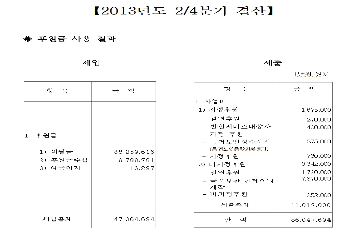 충주시노인복지관 2/4분기 후원금 결산