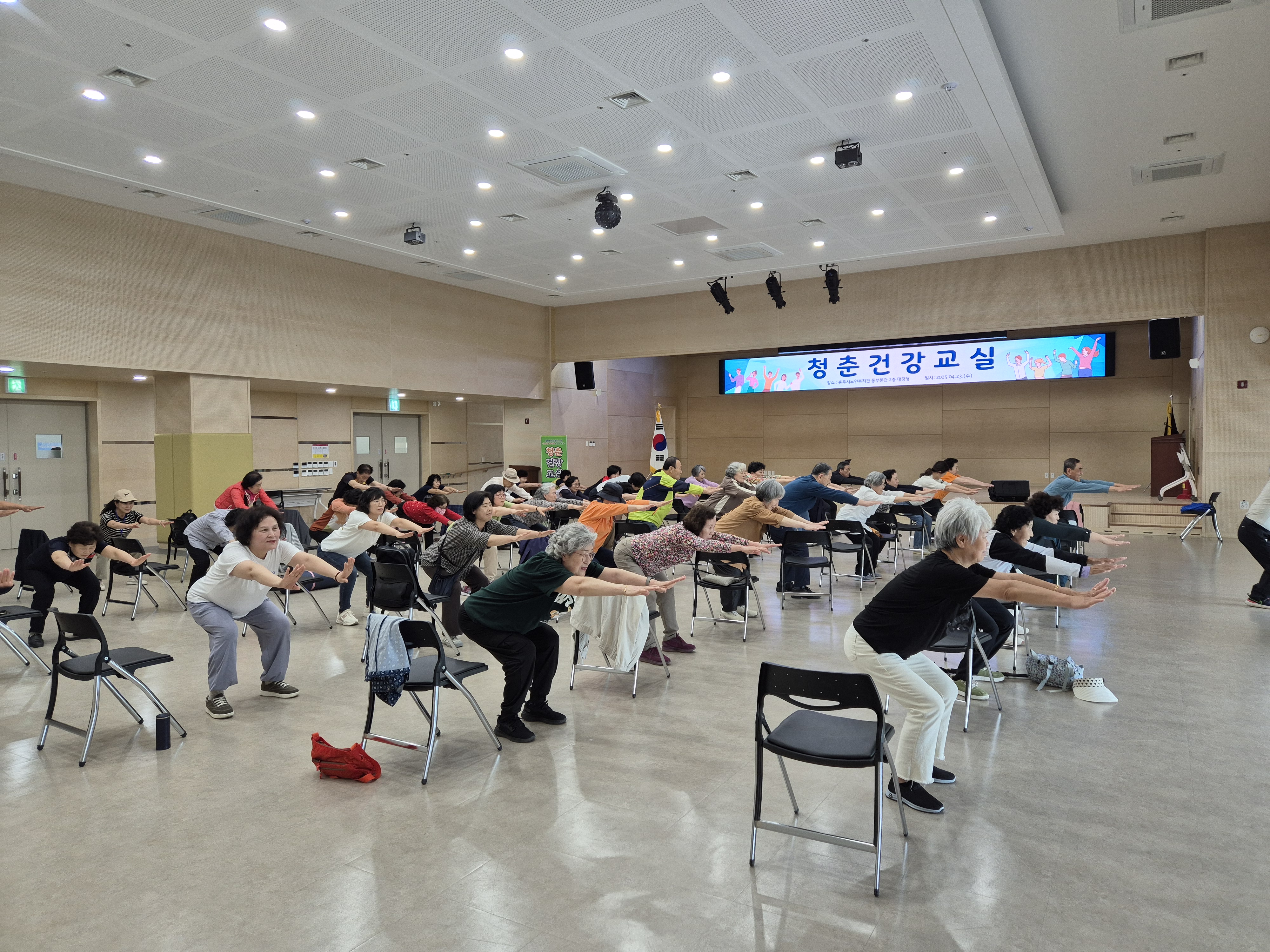 이번 청춘건강교실에서는 실버스트레칭을 실시하였습니다.
