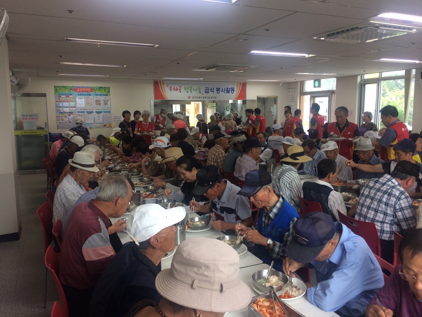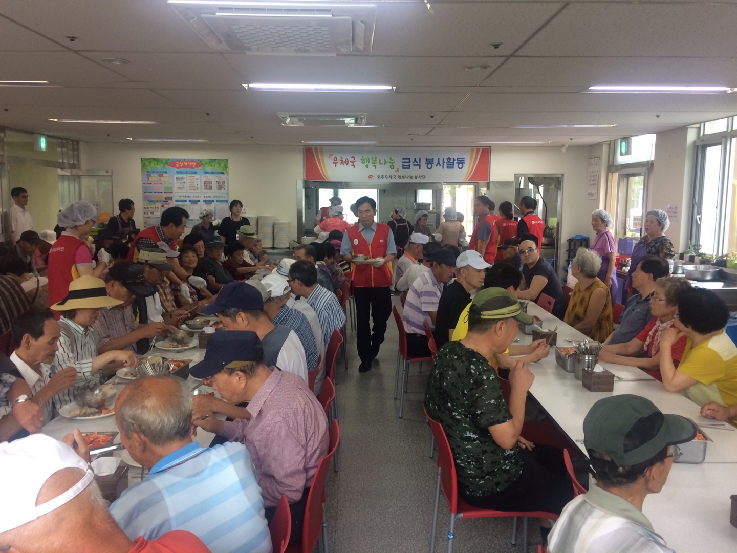 지난 19일 충주우체국(국장 이진섭) 직원 일동은 중복을 맞아 본 복지관에서 지역 어르신 500여명을 모시고 삼계탕을 후원하였습니다.