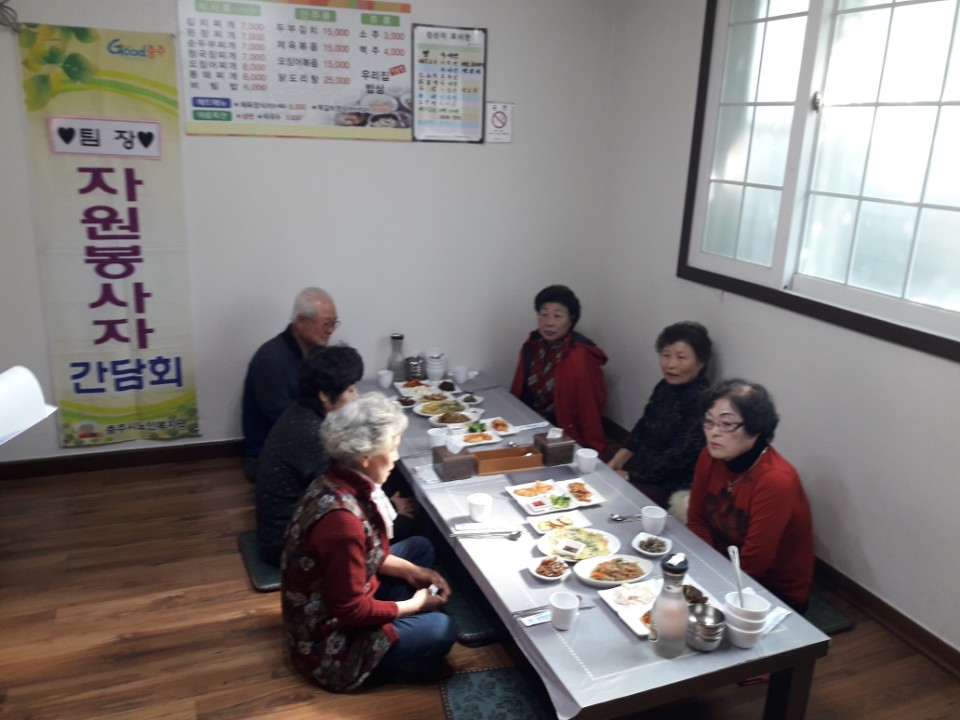 11월 7일 원활한 자원봉사사업을 위하여 각 팀별 팀장님들을 모시고 간담회를 진행하였습니다. 팀장님들과 소통하고 자원봉사사업의 발전을 도모하기 위한 이야기를 나누는 귀한 시간이 되었습니다. 항상 팀에 주축이 되어 수고해주시는 팀장님들과 팀원 자원봉사자분들 모두 진심으로 감사드립니다^^