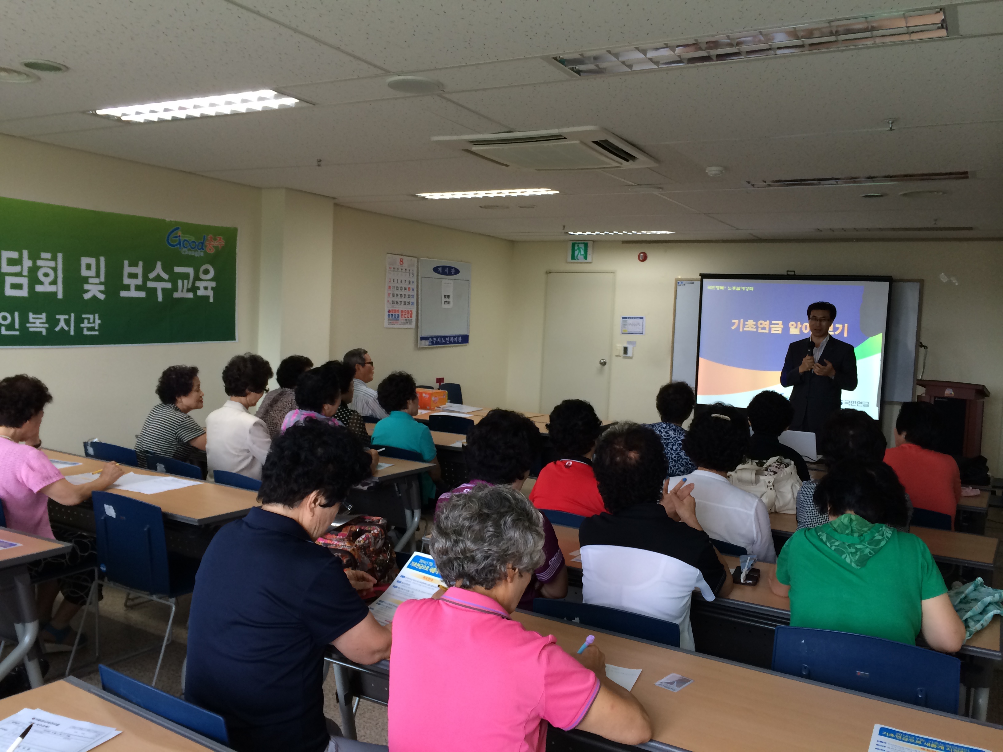 8월 26일부터 8월 29일까지 4일간 노인일자리 사업단별(은빛환경지킴이, 초록세상가꾸미, 어르신자치순찰대, 즐거운강사파견) 하반기 보수교육 및 정기 간담회를 충주시노인복지관 본관에서 진행하였습니다. 하반기 보수교육 및 정기 간담회를 통해 사업 활동의 원활한 운영과 참여자 어르신들의 건의 사항 및 의견을 제시하는 시간을 가졌습니다.
