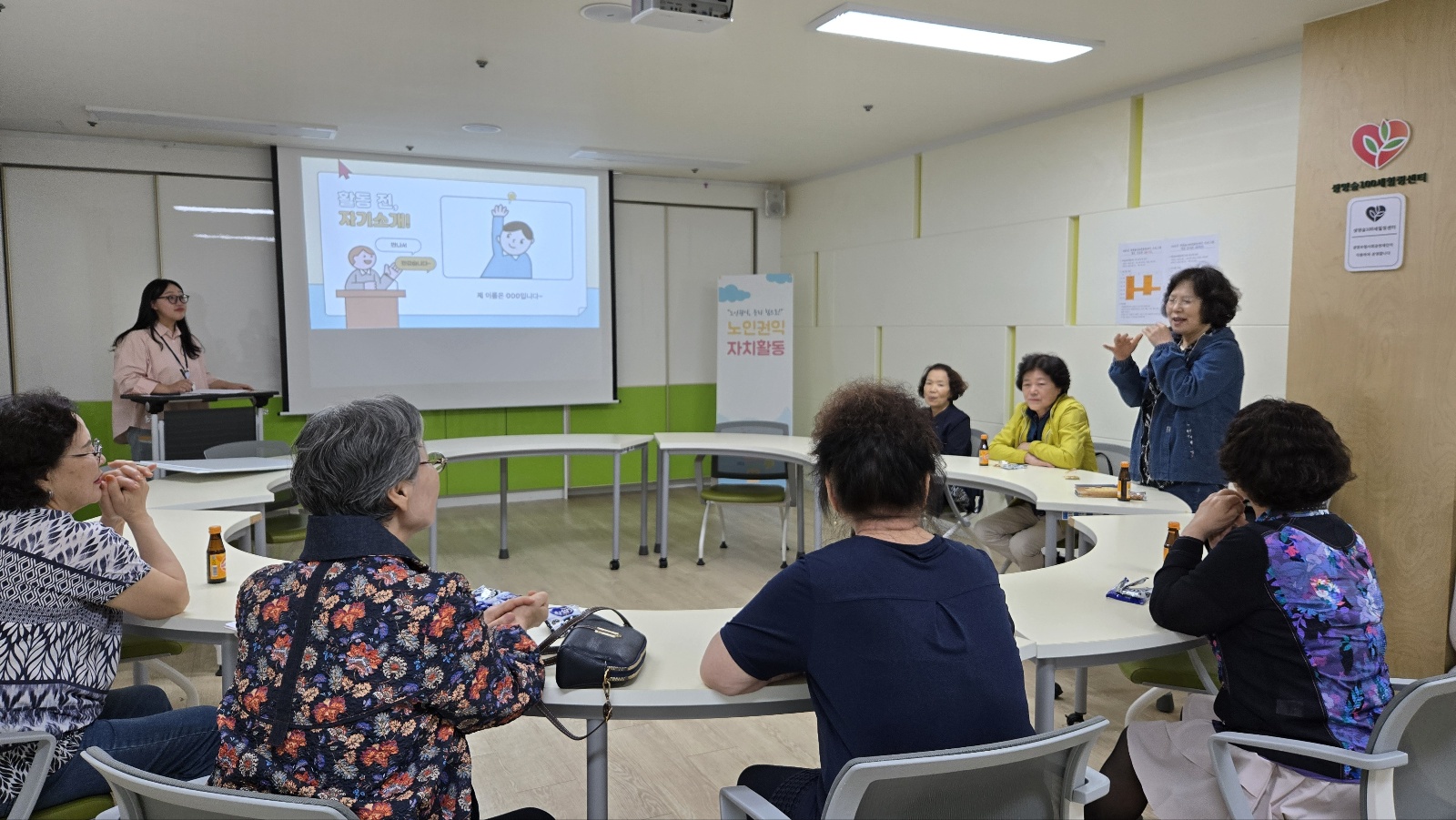 자치활동은 노인들의 권익 증진을 위한 활동으로, 올해는 행복한 복지관 이용을 돕기 위한 활동을 하고자 합니다~~