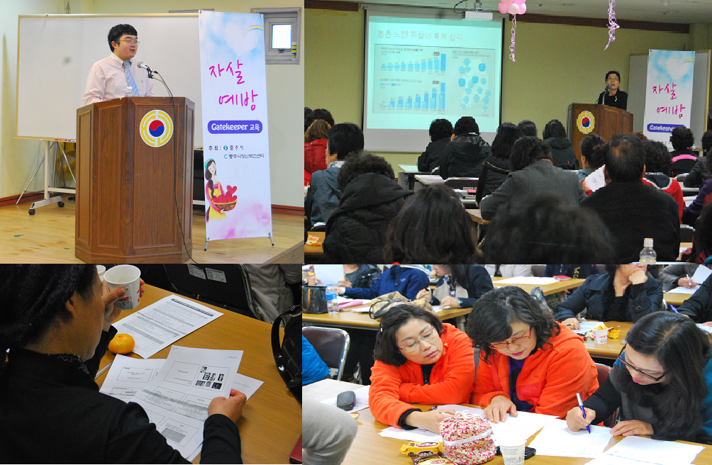 이번 게이트키퍼 교육을 통해 지역 사회 어르신들과 가장 가까이에서 활동하는 노인돌보미들이 자살 위험이 높은 대상을 지속적으로 관리하고, 응급상황 시 신속하게 전문적인 서비스를 받도록 연결해주는 노인자살예방 선도자 역할을 하리라 기대합니다.