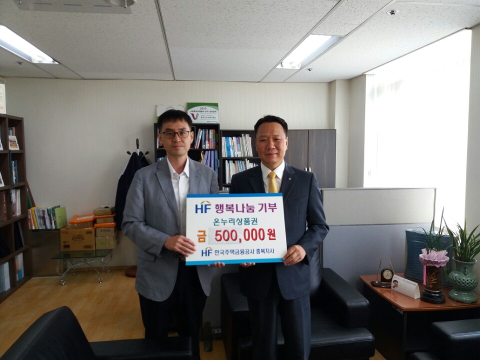 9월 9일 한국주택금융공사 충주지사에서 50만원 상당의 온누리 상품권을 후원해주셨다. 이 상품권은 독거어르신들에게 사용될 예정이다.