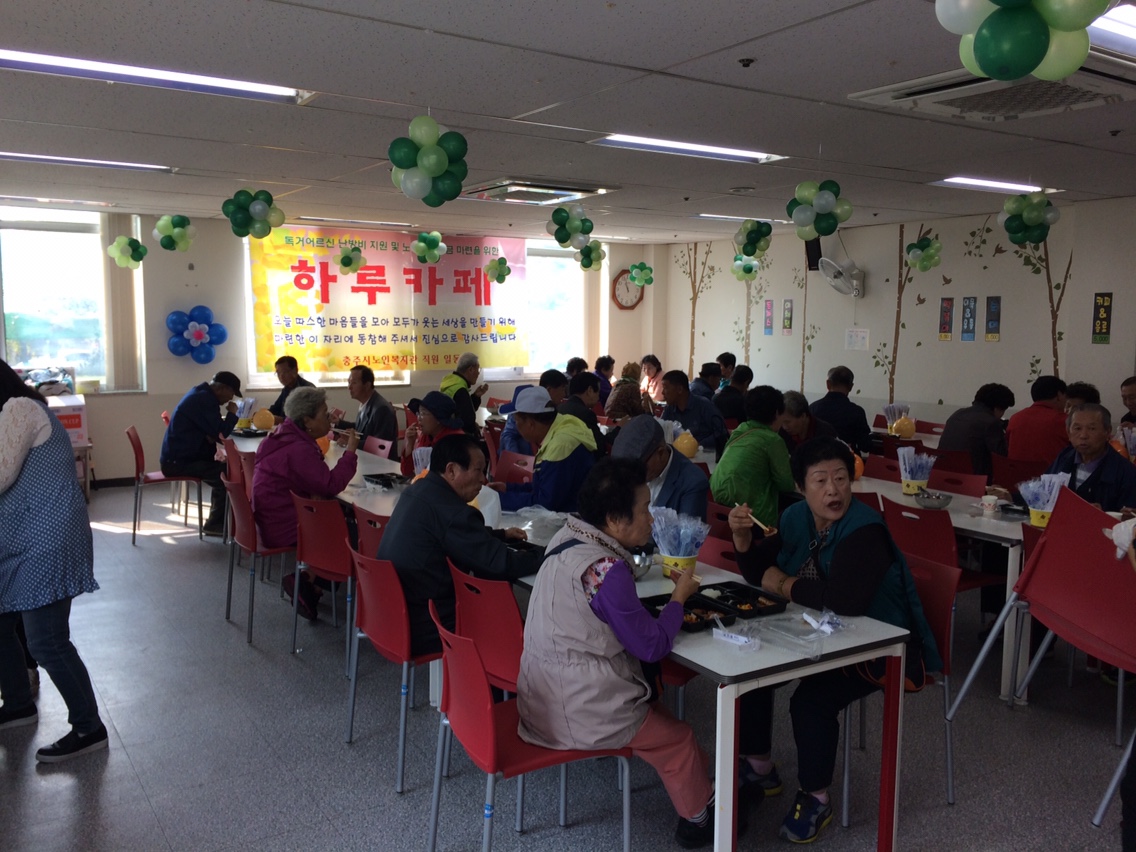 2016년 10월 14일 독거어르신 난방비 지원과 노인복지기금 마련을 위한 하루카페를 실시하였습니다. 많은 분들의 성원과 관심 덕분에 성황리에 행사를 마칠 수 있었습니다. 이번 하루카페를 진행하면서 얻어진 수익금은 독거어르신 난방비 지원과 사각지대에 놓인 어르신들을 위해 사용하겠습니다.