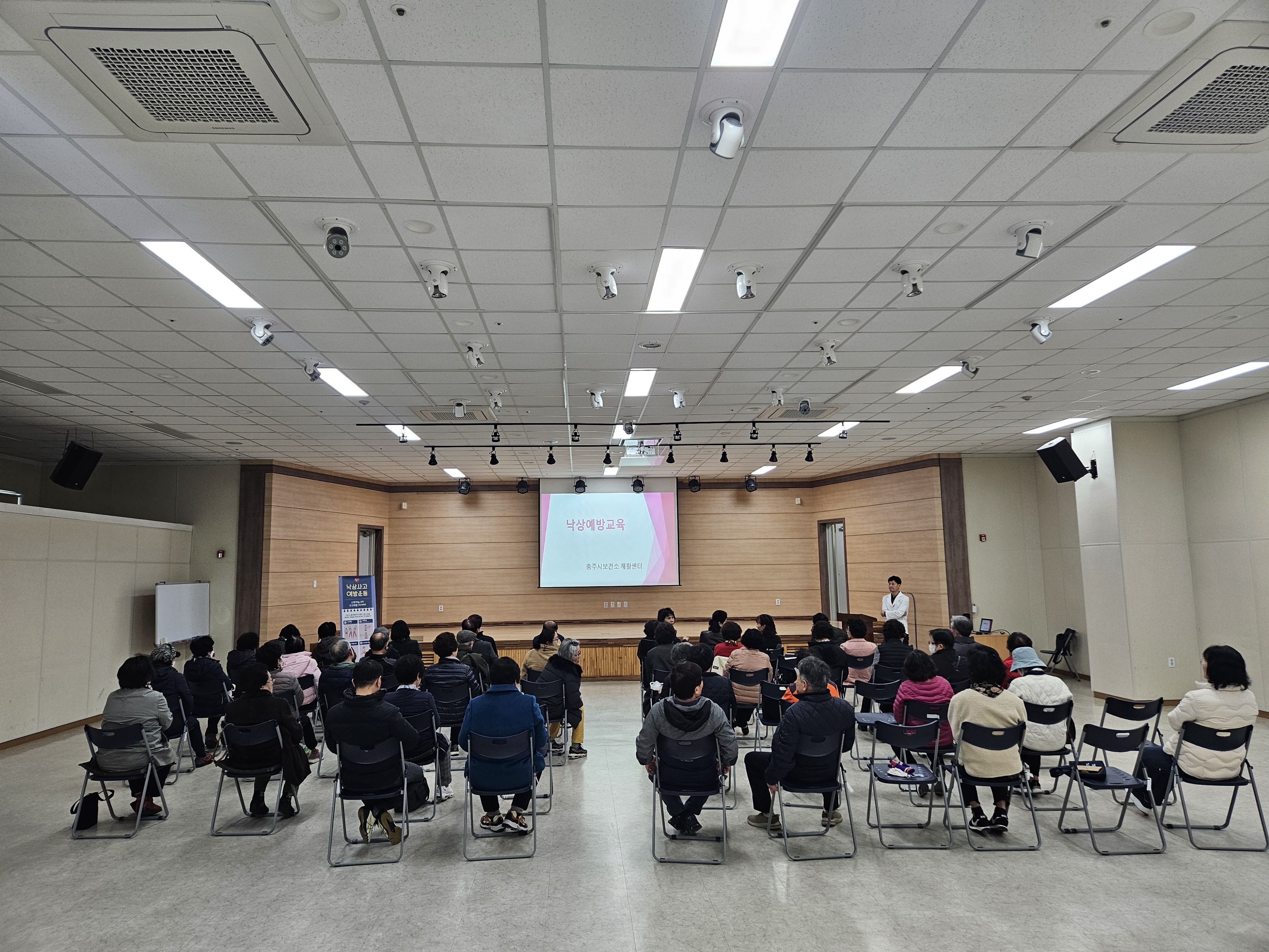 충주시 보건소와 연계하여 지난 3월 13.(수) 어르신들의 낙상사고 예방교육을 실시하였습니다.