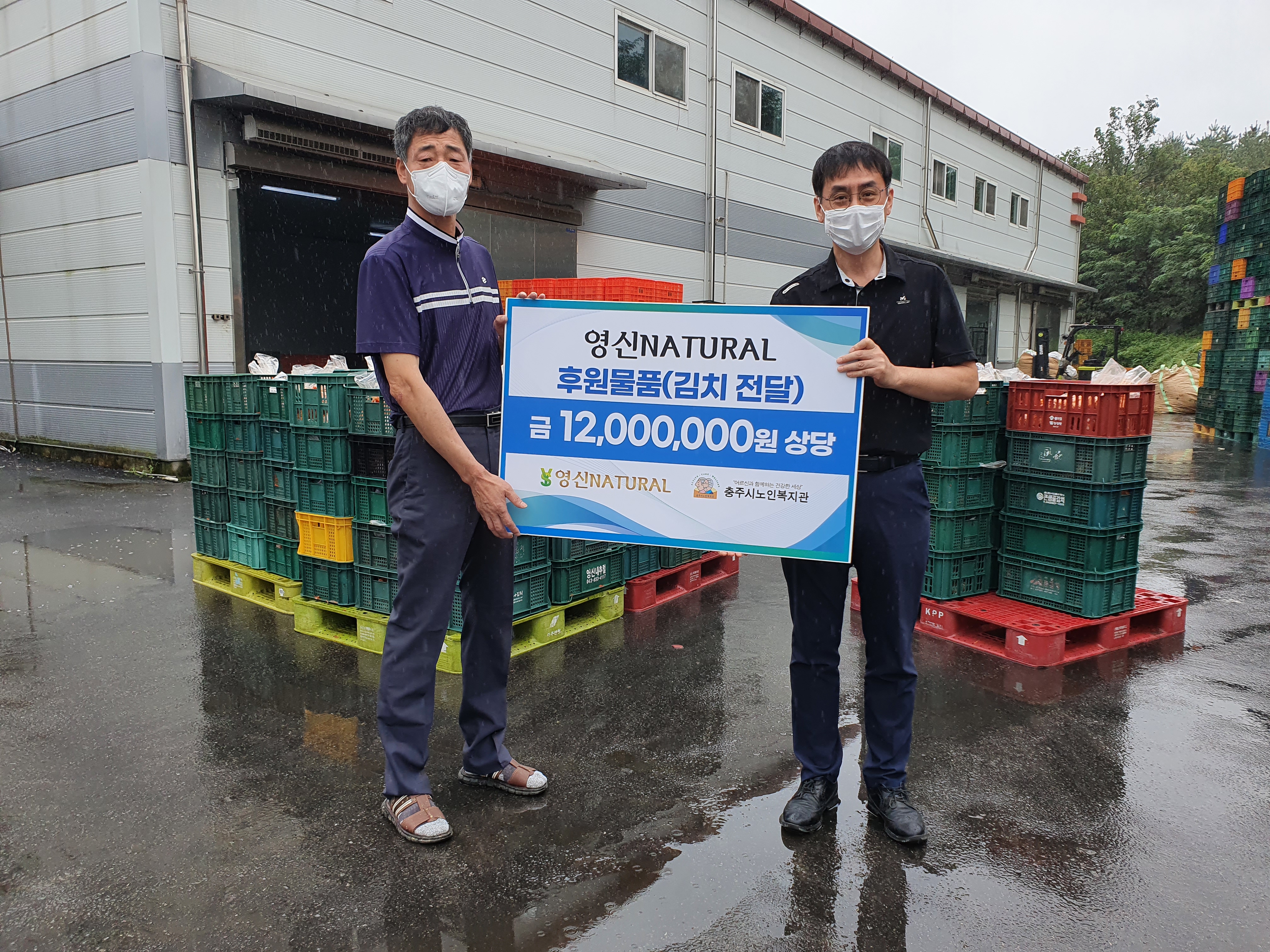 영신내추럴은 지난 2017년부터 충주시노인복지관에 후원을 시작하여 현재까지 8,5000만원 상당의 김치를 후원하였으며, 코로나19로 어려운 상황에도 적극적이고 따뜻한 나눔을 실천하여 지역 내 귀감이 되고 있습니다.