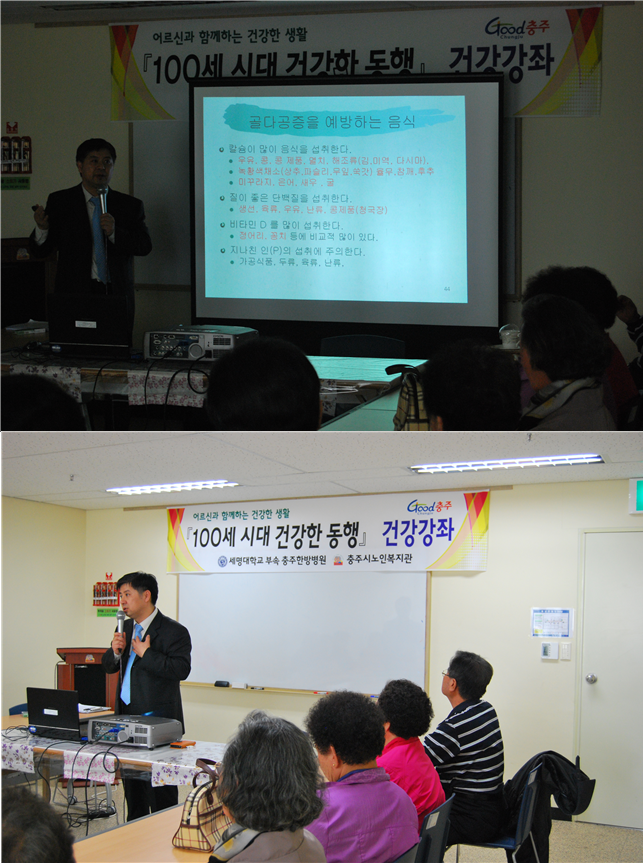 100세 시대에 어르신들의 건강한 노후를 위해 충주시노인복지관에서는 세명대 부속 충주한방병원과 함께 골다공증 내용으로 4월 건강강좌를 개최했다.